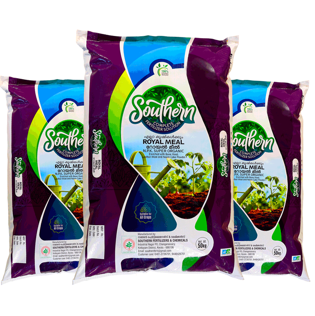 Royal Meal is a premium blend of high-quality bio compost, bone meal, and neem cake, fortified with essential micronutrients. This comprehensive formulation ensures a plentiful supply of nitrogen (N), phosphorus (P), potash (K), plant growth stimulators, and other vital mineral elements. Royal Meal not only nourishes the plants but also improves soil health, promoting robust plant growth and enhanced yield.