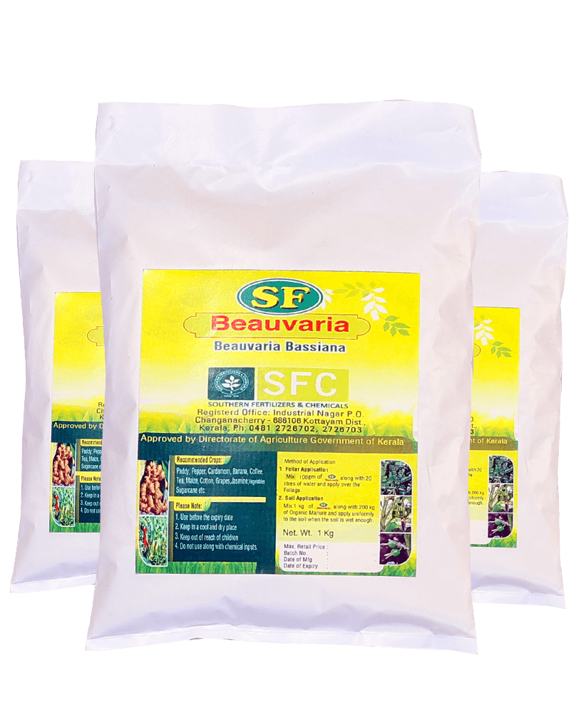 Beauveria bassiana is a fungus known for causing white muscardine disease in insects. When the spores of this fungus come into contact with an insect, they germinate and grow directly into the insect, ultimately killing it. Beauveria is effective in controlling paddy bugs, paddy leaf folders, banana pseudostem borers, stem borers, whiteflies, aphids, and thrips.